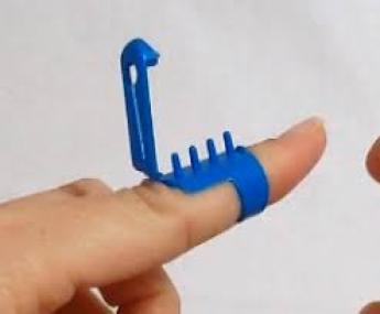 Made of soft, lightweight, durable plastic. It fits comfortably on the finger. Used when knitting with different colors.