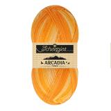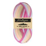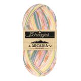 Arcadia is made from a blend of 75% Superwash Virgin Wool and 25% Polyamide. It’s warm and breathable due to the natural properties of wool, with the toughness and easy-care qualities that come from blending wool with polyamide. Aimed at knitters looking for a practical mid-range sock yarn, Arcadia is machine-washable. It has great stitch definition and a slightly rustic feel on the ball, which soon softens with handling.