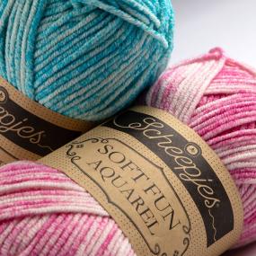 The soft and gentle Softfun yarn consists of a cotton / acrylic blend which makes it suitable for knit and crochet projects such as soft toys, garments for babies, children and adults, accessories and home decor. Combine these subtle watercolour shades and let them merge together creating your own beautiful piece of art.
