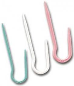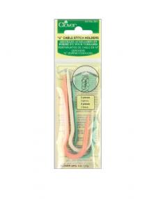 סט מחזיקי עיניים המסייע לסריגת צמות. העיניים נשמרות על המחזיק בצורה בטוחה וניתן לסרוג את העיניים מאחורי או מלפני המחזיק ולסובב אותם זה סביב זה.