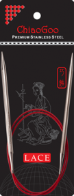 מסרגות מתכת מהסדרה Lace האדומה של חברת Chiaogoo. המסרגות ישרות וללא כיפוף בקצה.