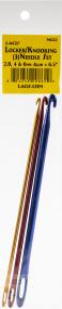 סט של מסרגות Knooking מאלומיניום באורך 16.5 סנטימטר עם מסרגה אחת בקצה אחד ועין בקצה השני. משמש להכנת שטיחי לוקר על קנבס, אריגת לנו וסריגה מסוג נוקינג.