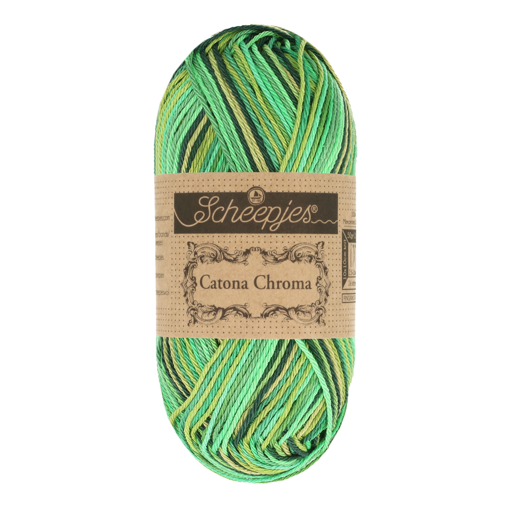 Catona Chroma היא גרסה יפה ורב-צבעונית על חוט ה Catona. שני החוטים זהים בתכולת הסיבים ובאיכותם וגווני הצבע החדשים של Catona Chroma מבוססות על הגוונים הקיימים של סדרת Catona. זה מאפשר לשלב את שני החוטים בצורה מושלמת ונותן לפרויקטים צבע שובב.