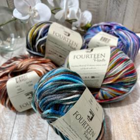 תערובת יוקרתית של צמר מרינו 14 מיקרון (ומכאן השם, Fourteen) וקשמיר, חוט זה בעובי Worsted הוא כמו סריגה באוויר טהור. זמין בשלל צבעים בהירים, חוט זה יפנק אותך לכל דבר. Fourteen Paints, עם מבנה שרשרת עדין, אידיאלי עבור בגדים קלים ואביזרים צבעוניים.