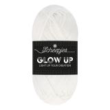 Scheepjes Glow Up זמין בגוון אחד: לבן באור, עם זוהר ירוק וזוהר בחושך. החוט עשוי מ-100% פוליאסטר וגודל המסרגה המומלץ הוא 2.75-4.00 מ"מ. מומלץ לשטוף את החוט ביד.