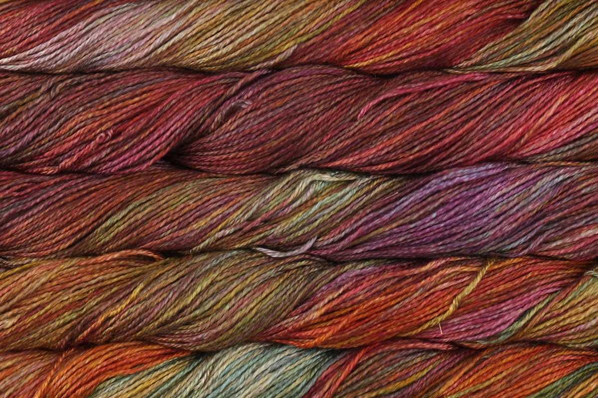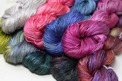 חוט 100% משי (Mulberry silk), צבוע ביד. בעובי 4ply.