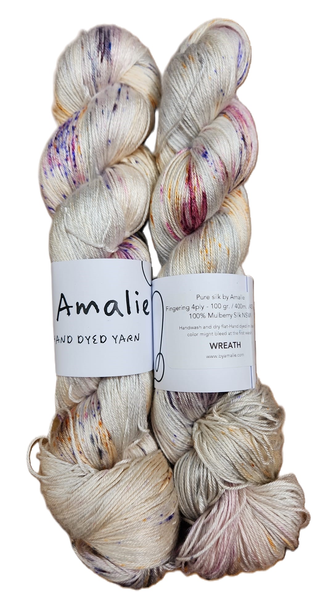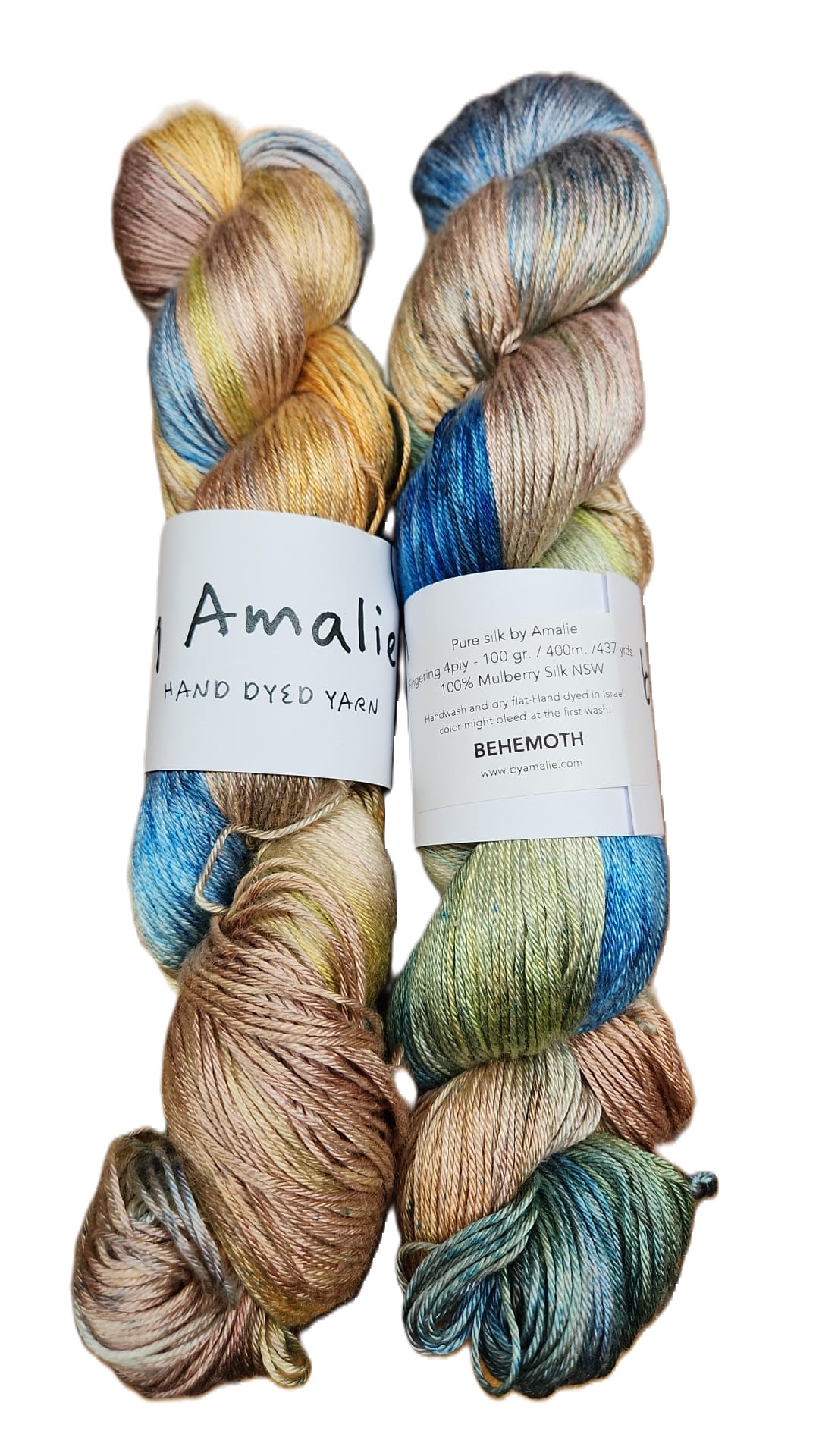 חוט 100% משי, Grade A Mulberry Silk NSW, בעובי Fingering בצביעת יד מבית by Amalie