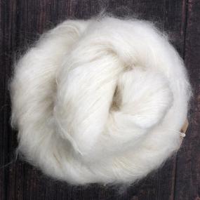חוט לא צבוע, סיב בודד מוברש. מושלם לצביעה עצמית. 78% מוהייר ו 13% מרינו ו 9% ניילון בדוללות של 100 גרם.